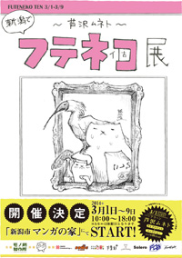 作者、芦沢ムネト自身のツイッターなどを通じて人気が広がった「フテネコ」。昨年好評だった東京開催に続き、新潟市マンガの家で「フテネコ展」を開催します。ツイッターで毎日掲載されている「フテネコ」の原画、フテネコ顔抜きパネルを見ることができます。